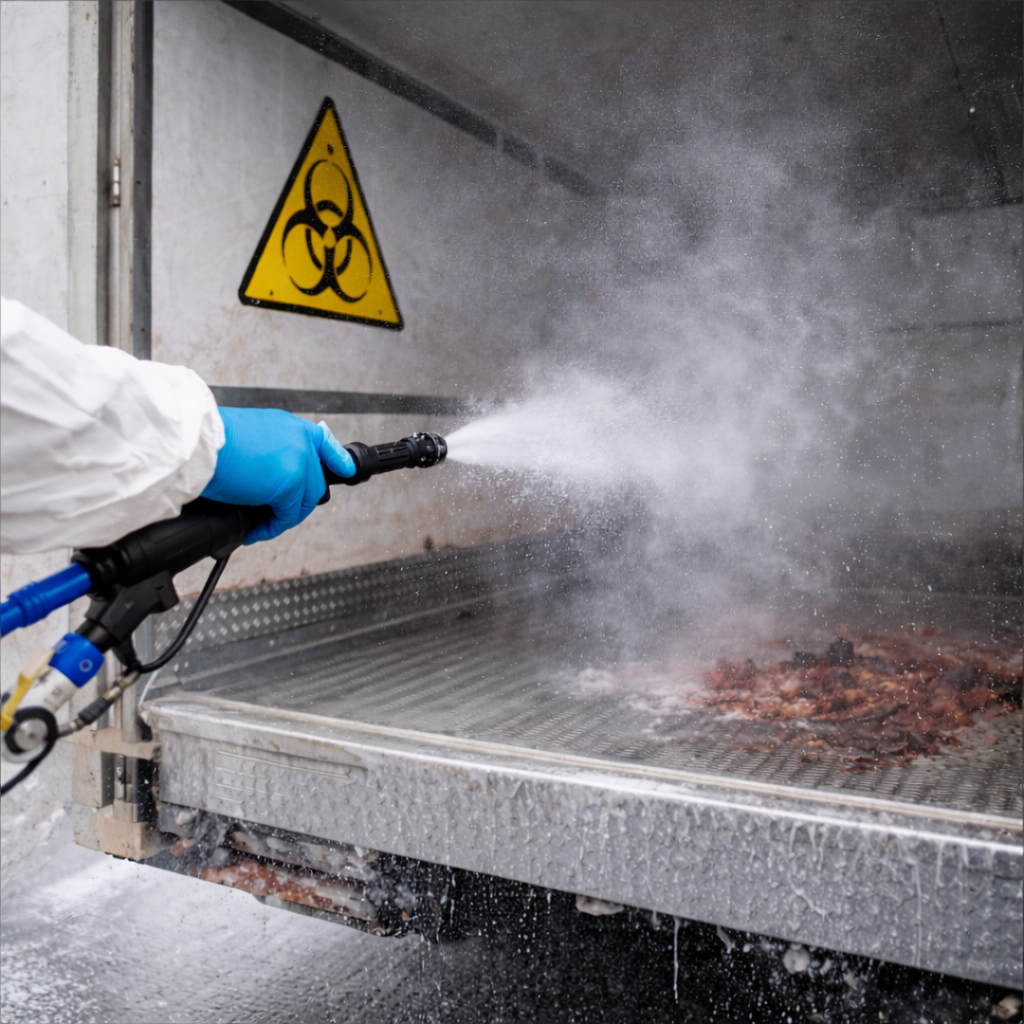 Servicio específico para vehículos que transportan subproductos animales no destinados al consumo humano. Aplicamos protocolos controlados y productos autorizados para cumplir con la normativa sanitaria vigente.
