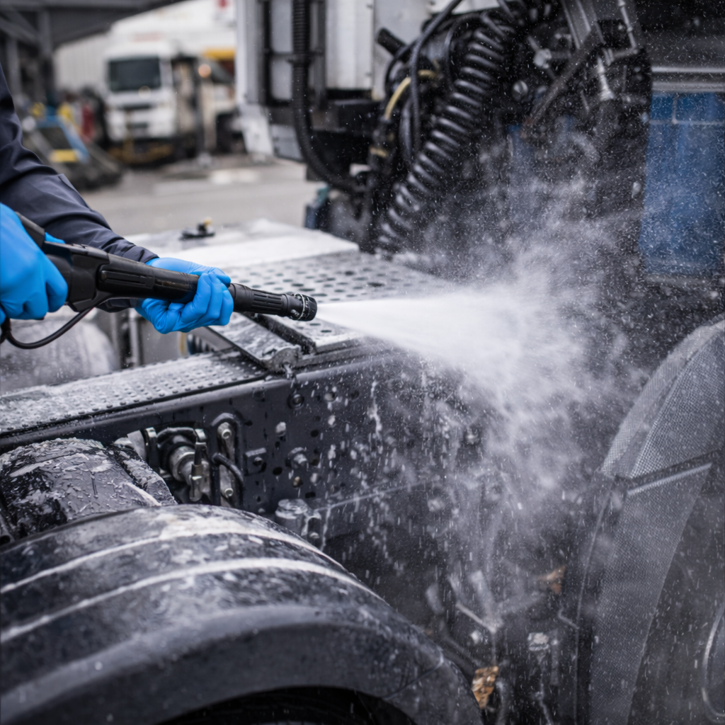 Realizamos una limpieza profunda de camiones y tráileres utilizando equipos de agua caliente a alta presión, eliminando suciedad, restos orgánicos y posibles contaminantes para garantizar la higiene y seguridad del vehículo.